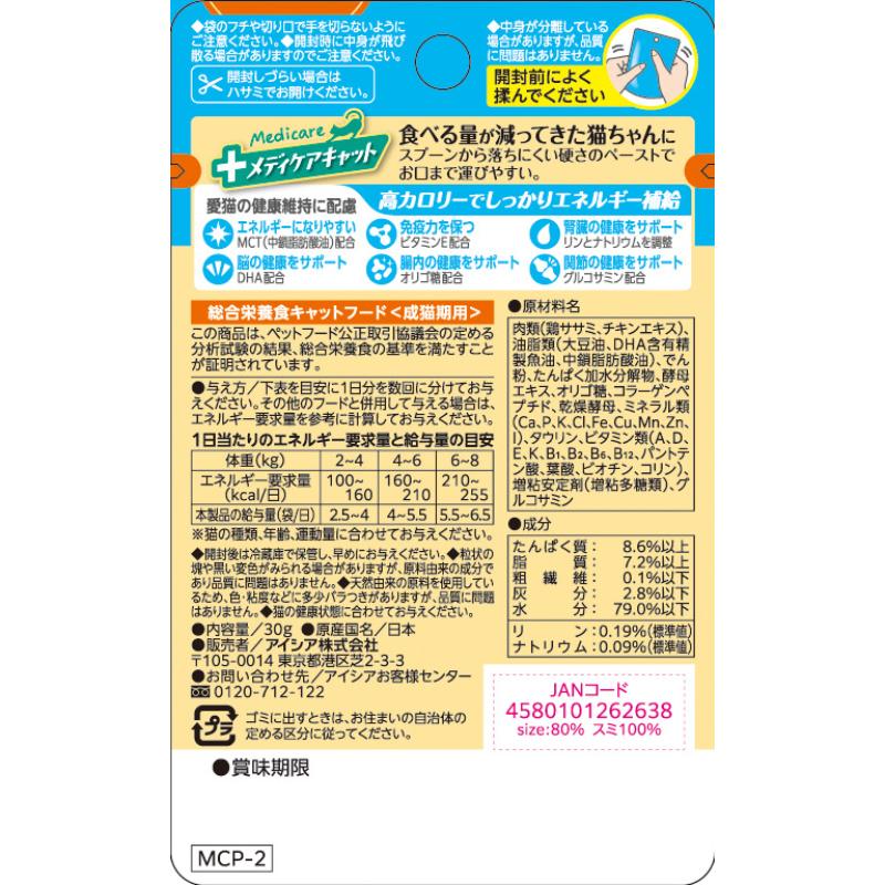 [アイシア]メディケアキャット 食べる量が減ってきた猫ちゃんに スプーンで与えやすい チキンペースト 30g