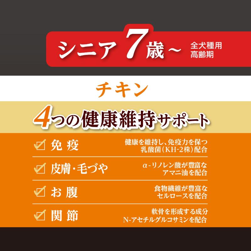| 素材 | <原材料> 肉類(鶏・鶏レバー)、脱脂大豆、コラーゲン、糖類、デキストリン、N-アセチルグルコサミン、アマニ油、酵母、乳酸菌(KH-2株(熱処理済))、加工でんぷん、グリセリン、ソルビトール、ミネラル類(カルシウム・リン・塩素・ナトリウム・鉄・亜鉛・銅・ヨウ素・コバルト)、メチオニン、pH調整剤、セルロース、ポリリン酸Na、ビタミン類(A・B1・B2・B12・?・E・コリン・パントテン酸) <保証成分> たん白質26.0%以上、脂質6.5%以上、粗繊維1.0%以下、灰分7.0%以下、水分27.0%以下、ナトリウム:0.5g以下、カルシウム:0.37%以上、リン:0.3%以上、ビタミンA:3,650IU以上、ビタミンB1:1.65mg以上、ビタミンD:365IU以上、リノール酸:0.81%以上 <エネルギー> 328kcal/100g |