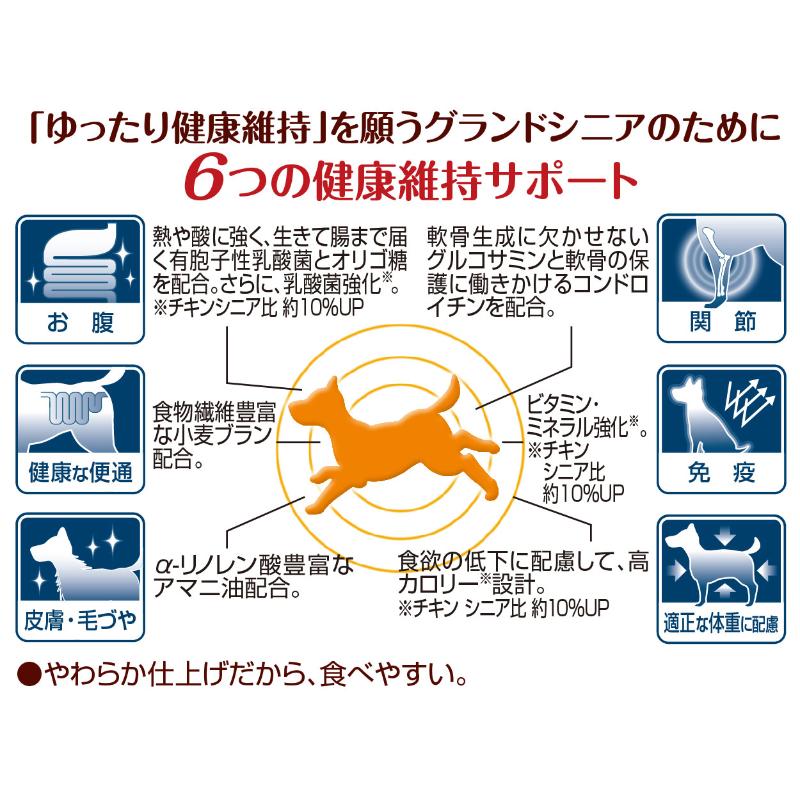 ・グランドシニアのための6つの健康(お腹・皮膚毛艶・健康な便通・関節・適正体重・免疫)維持サポート。