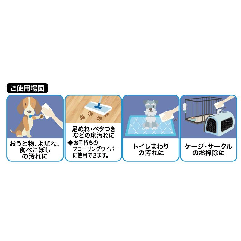 ・本品は清掃用シートです。ペットの身体を拭くウェットティッシュではありません。 ・全ての菌を除去するわけではありません。 |