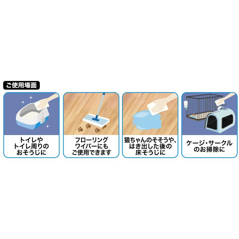 ・猫ちゃんのトイレ周り、そそうや吐き戻し後の床そうじ、ケージ・サークルのおそうじにも使えます。