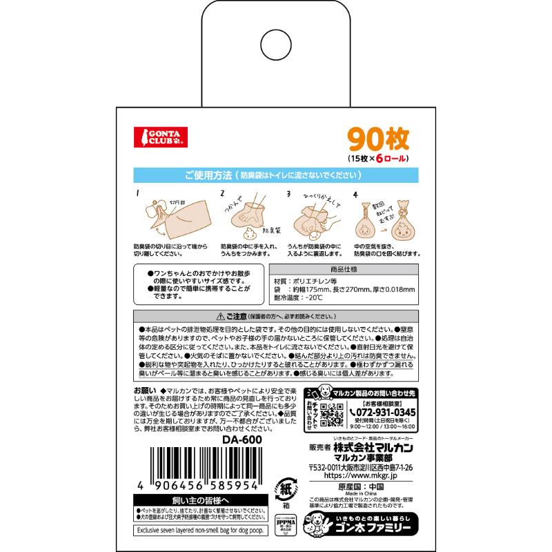 | 注意事項 | ・本品はペットの排泄物処理を目的とした袋です。その他の目的には使用しないでください。