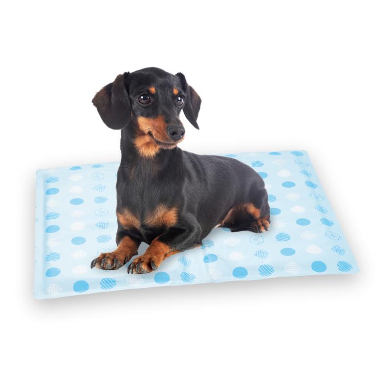 [明和グラビア]ひんやりペットマットINHM-10 足跡 ブルー 45×60cm