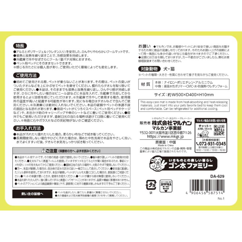 ・アルミとポリマージェル(ウレタン入り)を使用した、ひんやりやわらかいクールマットです。