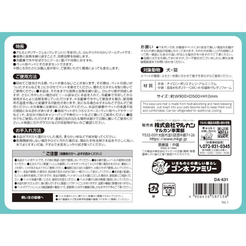 ・アルミとポリマージェル(ウレタン入り)を使用した、ひんやりやわらかいクールマットです。