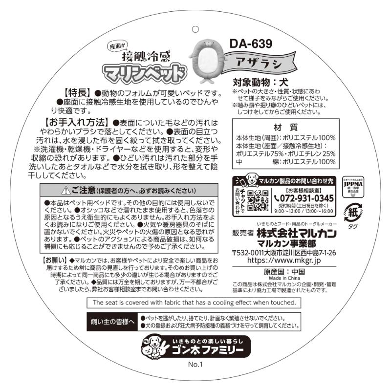 | 注意事項 | ・本品はペット用ベッドです。その他の目的には使用しないでください。