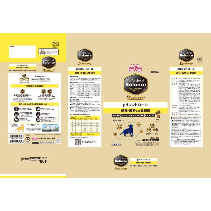 [ペットライン]プロフェッショナル・バランス エクストラケア pHコントロール 避妊・去勢した愛猫用 400g(200g×2袋) ●通販サイト掲載販売不可<専門店商材>