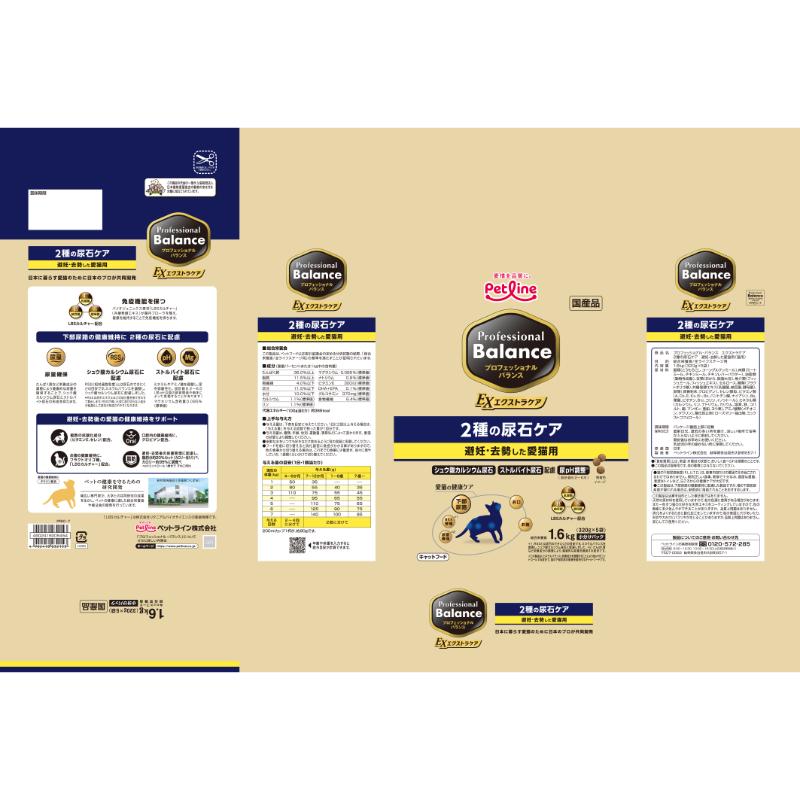 [ペットライン]プロフェッショナル・バランス エクストラケア 2種の尿石ケア 避妊・去勢した愛猫用 1.6kg(320g×5袋) ●通販サイト掲載販売不可<専門店商材>