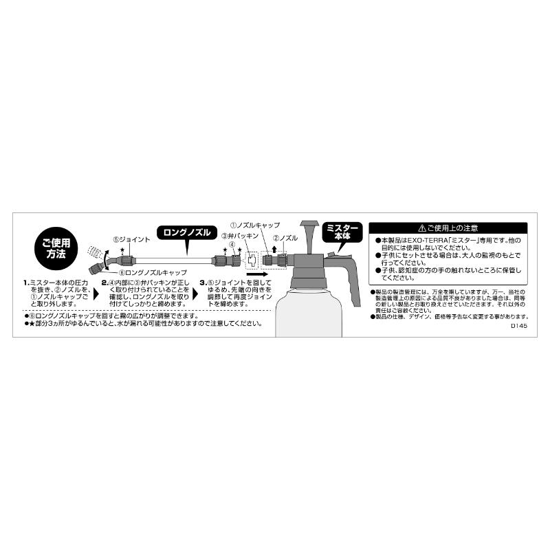 | 注意事項 | ・本製品はEXO-TERRA「ミスター」専用です。他の目的には使用しないでください。