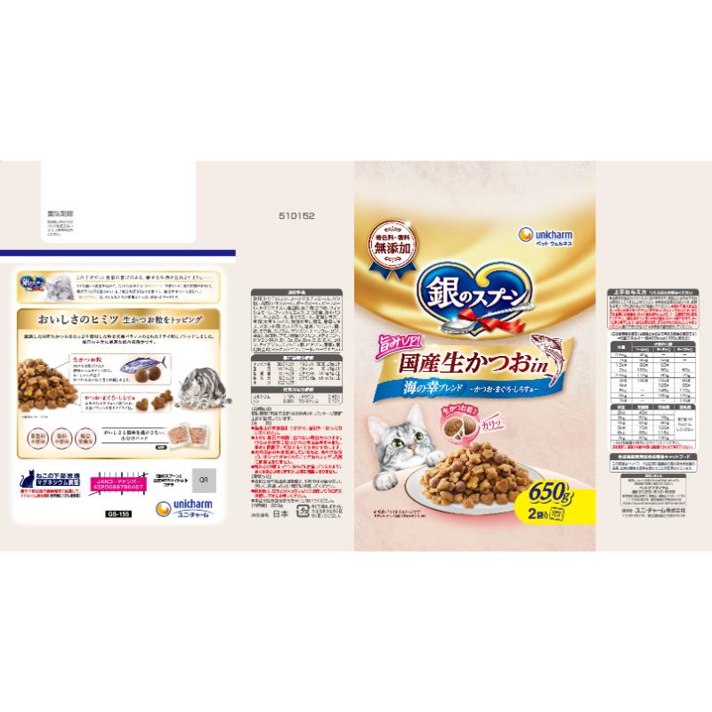 [ユニ・チャーム]銀のスプーン 国産生かつおin 海の幸ブレンド かつお・まぐろ・しらす味 650g