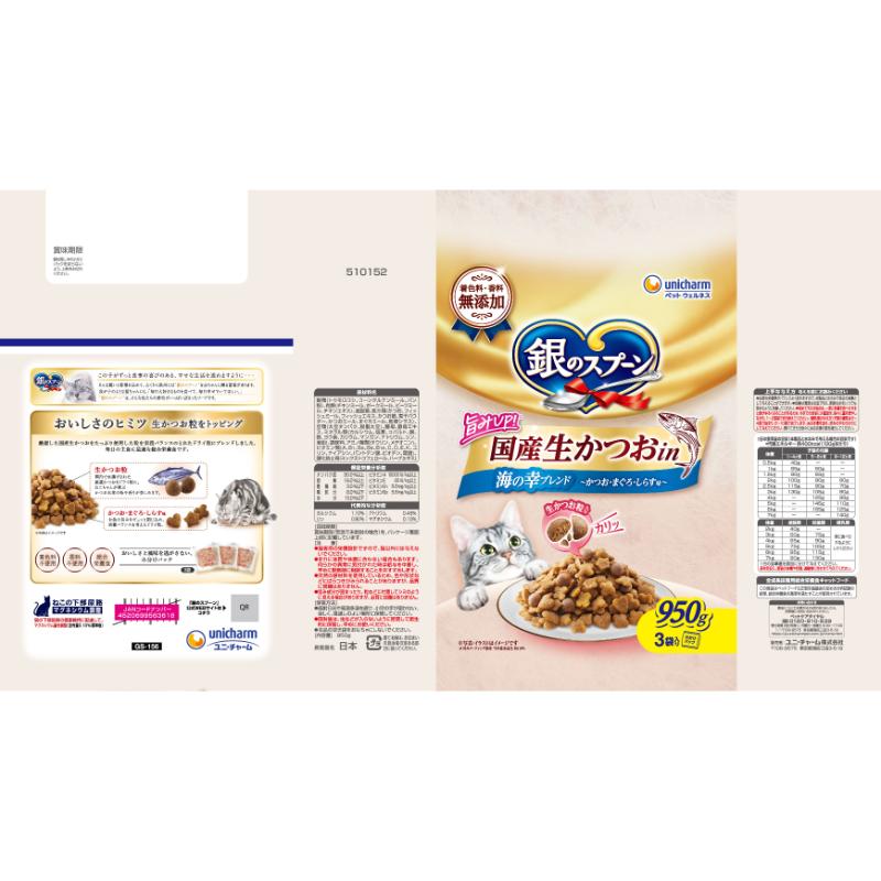 [ユニ・チャーム]銀のスプーン 国産生かつおin 海の幸ブレンド かつお・まぐろ・しらす味 950g