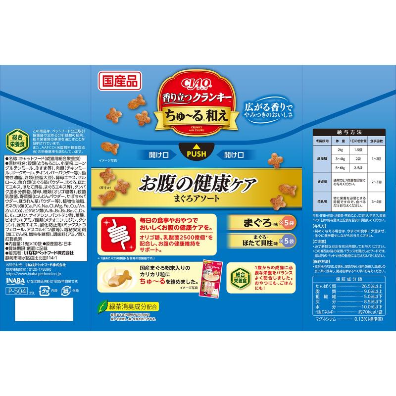 [いなばペットフード]CIAO 香り立つクランキー ちゅ~る和え お腹の健康ケア まぐろアソート 18g×10袋