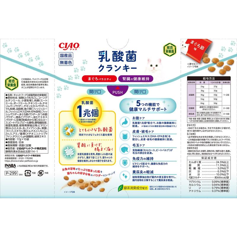 [いなばペットフード]CIAO 乳酸菌クランキーBOX 腎臓の健康維持 まぐろバラエティ 17g×10袋