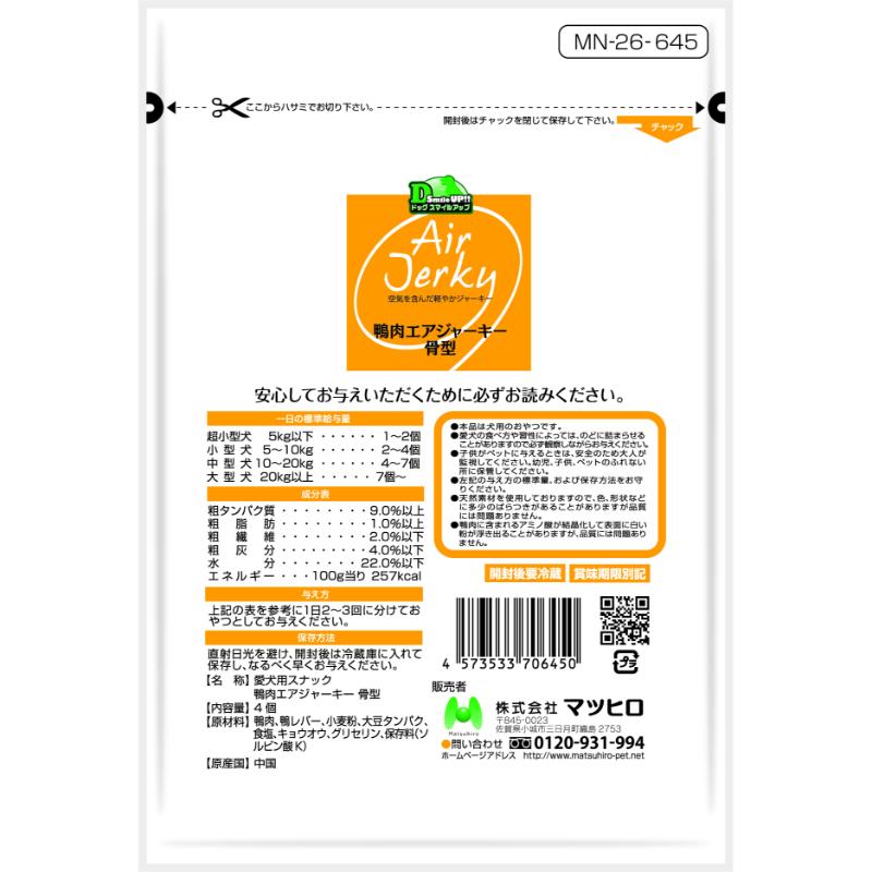 [マツヒロ]Dog Smile UP 鴨肉エアジャーキー 骨型 4個