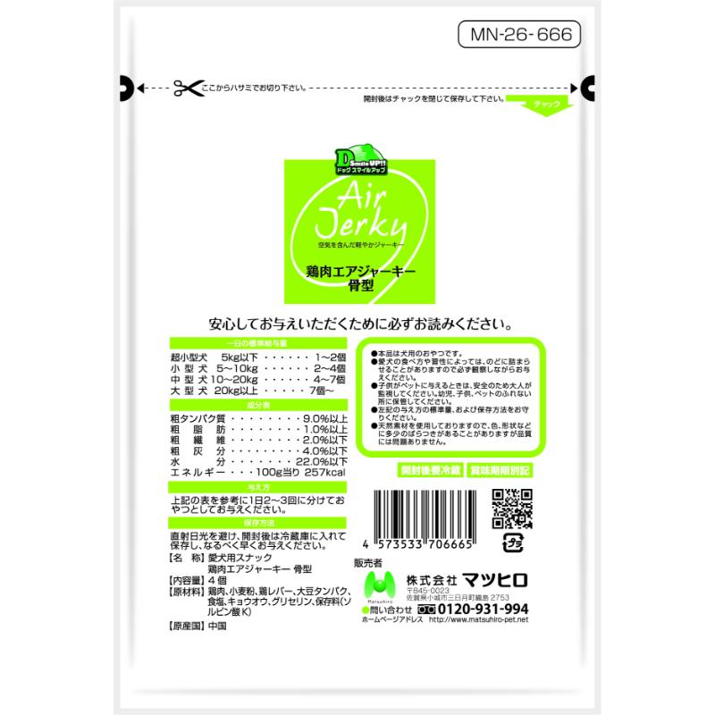 [マツヒロ]Dog Smile UP 鶏肉エアジャーキー 骨型 4個