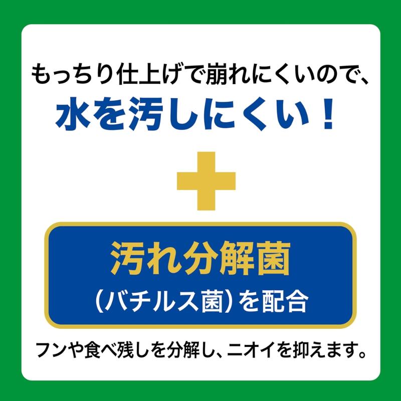 ・汚れ分解菌(バチルス菌)配合でフンや食べ残しなどの汚れを分解し、ニオイを抑制。