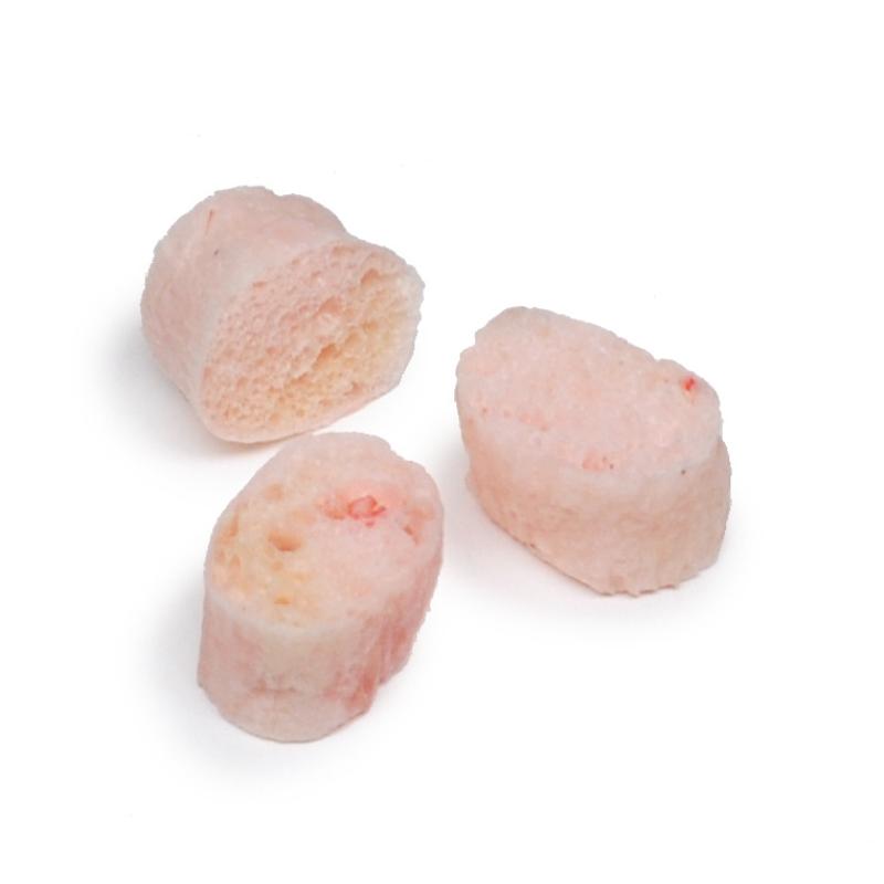 | 素材 | <原材料> 鶏肉、えび、澱粉、塩、増粘安定剤(加工澱粉、増粘多糖類)、グリセリン、炭酸カルシウム、膨張剤、植物油脂、リン酸カリウム、発色剤(亜硝酸ナトリウム)、酸化防止剤(ローズマリー、ビタミンE) <保証成分> 粗たんぱく質5.0%以上、粗脂肪3.0%以上、粗繊維3.0%以下、粗灰分3.0%以下、水分21.0%以下 |