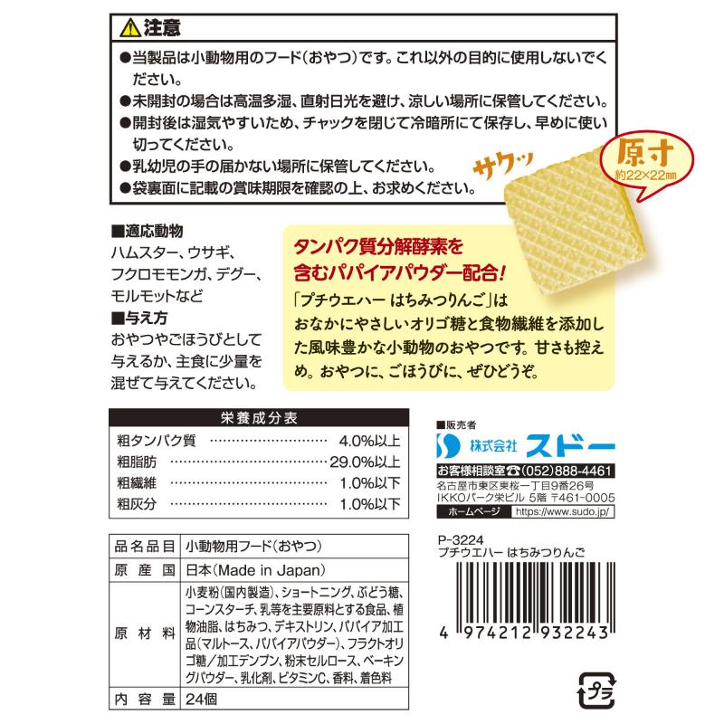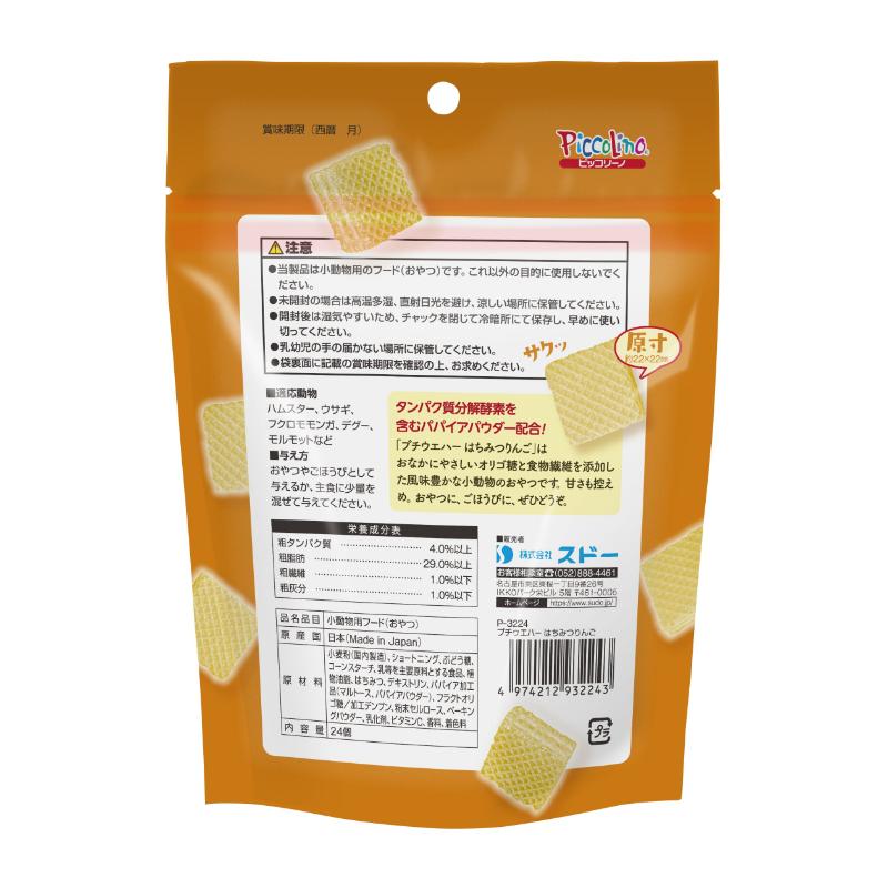 | 注意事項 | ・当製品は小動物用フード(おやつ)です。これ以外の目的に使用しないでください。