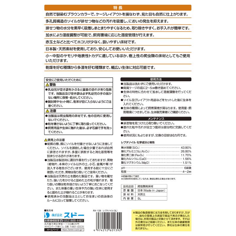 ・小~中型のヤモリや地表性トカゲに適しているほか、樹上性の爬虫類の床材としてもご使用いただけます。