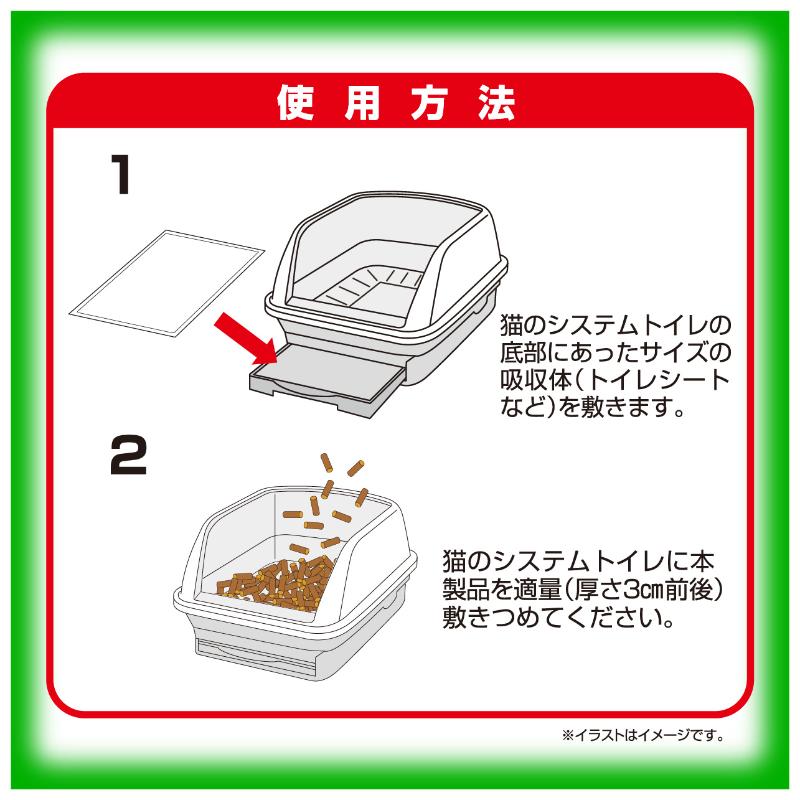 ・猫のシステムトイレに本製品を適量(厚さ3cm前後)敷きつめてください