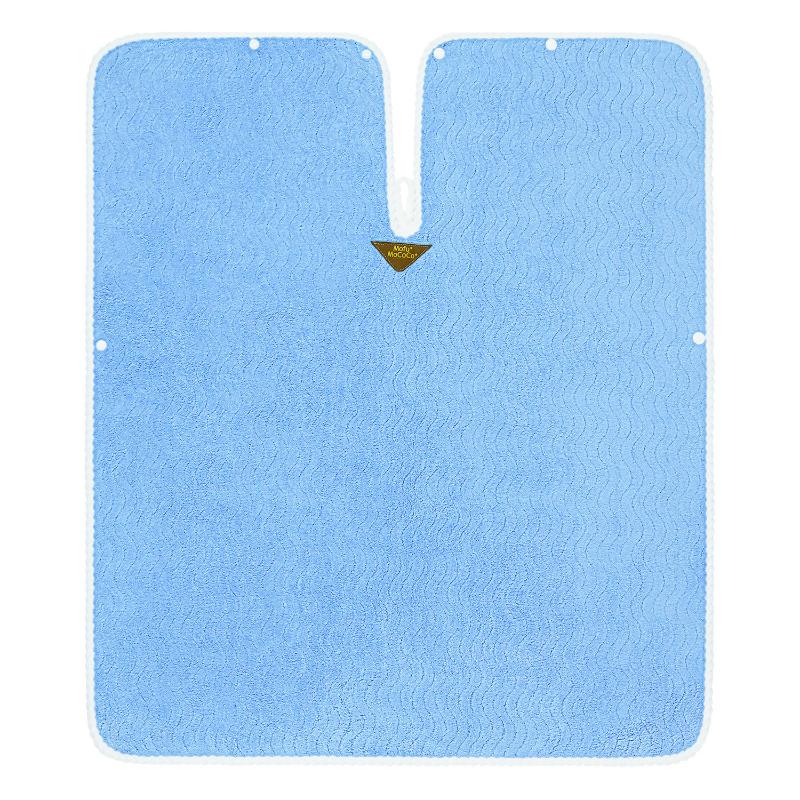 超極細繊維のマイクロファイバーを使用し、60秒時点で綿タオルの約6倍以上の吸水量!毎日つかうものだから抗菌防臭加工済。くるっと首にまわして使い方も簡単。首周りは2つのスナップで調整可能。シャンプー後のブルブルで周りに水が飛び散るのが防げます。四方はバイヤス巻でしっかり補強。おくるみ式だから抱っこしながらのご使用も可能。