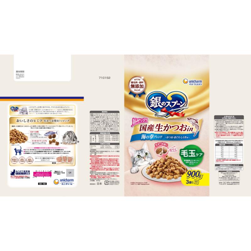 [ユニ・チャーム]銀のスプーン 国産生かつおin海の幸ブレンド 毛玉ケア 900g