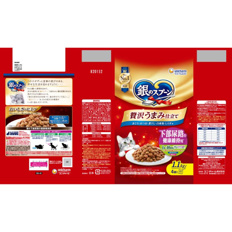 [ユニ・チャーム]銀のスプーン 贅沢うまみ仕立て まぐろ・かつお・煮干し・白身魚・しらす味 下部尿路の健康維持用 1歳~10歳頃まで 1.1kg