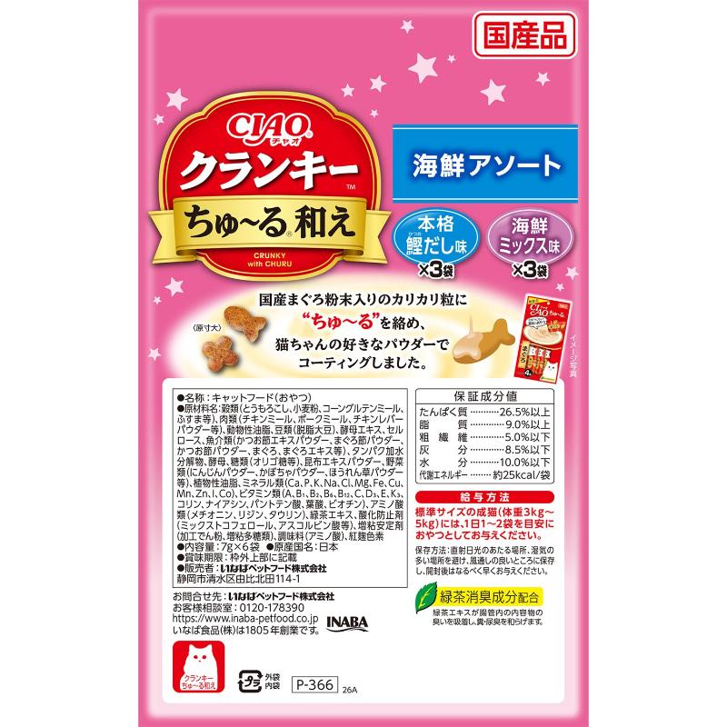 [いなばペットフード]CIAO クランキーちゅ~る和え 海鮮アソート 7g×6袋