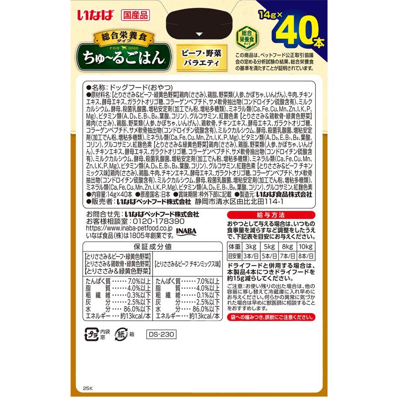 [いなばペットフード]いなば ちゅ~るごはん 総合栄養食タイプ ビーフ・野菜バラエティ 14g×40本