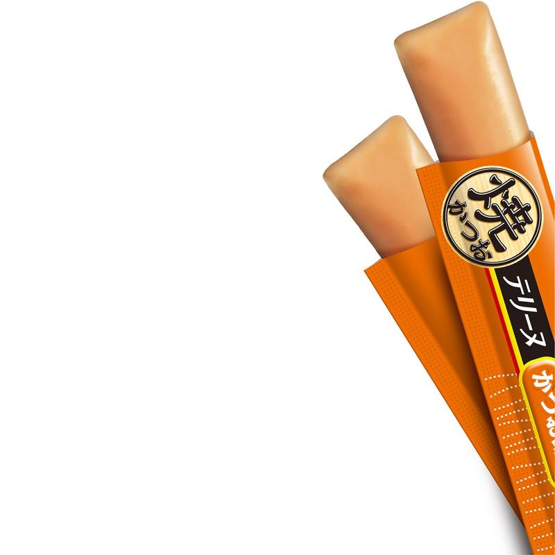 | 素材 | <原材料> かつお、寒天、かつお節エキス、糖類(オリゴ糖等)、植物性油脂、増粘安定剤(増粘多糖類、加工でん粉)、ミネラル類(Na、P、Cl)、調味料(アミノ酸)、ビタミンE、紅麹色素、緑茶エキス <保証成分> たんぱく質9.0%以上、脂質0.3%以上、粗繊維0.1%以下、灰分2.0%以下、水分88.0%以下 <エネルギー> 約8kcal/本 |