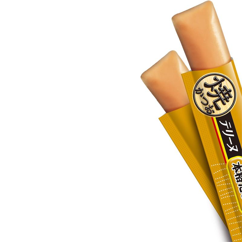 | 素材 | <原材料> かつお、寒天、かつお節エキス、昆布エキス、糖類(オリゴ糖等)、植物性油脂、増粘安定剤(増粘多糖類、加工でん粉)、ミネラル類(Na、P、Cl)、調味料(アミノ酸)、ビタミンE、紅麹色素、緑茶エキス <保証成分> たんぱく質9.0%以上、脂質0.3%以上、粗繊維0.1%以下、灰分2.0%以下、水分88.0%以下 <エネルギー> 約8kcal/本 |