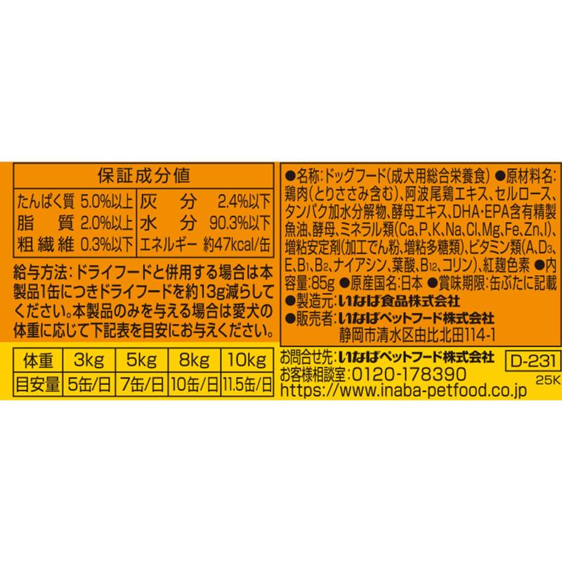 [いなばペットフード]国産いなば チキン ささみ入り 阿波尾鶏だし仕立て 85g