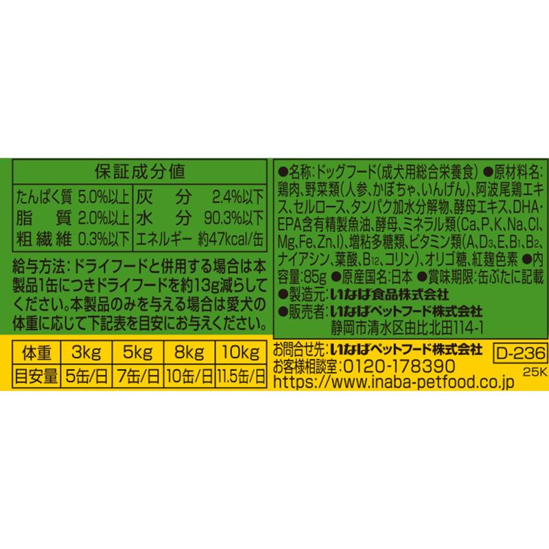 [いなばペットフード]国産いなば 高齢犬用 チキン 野菜入り 阿波尾鶏だし仕立て 85g