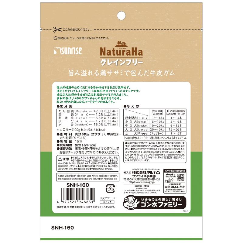 [マルカン サンライズ]ナチュラハ グレインフリー 旨み溢れる鶏ササミで包んだ牛皮ガム 15本