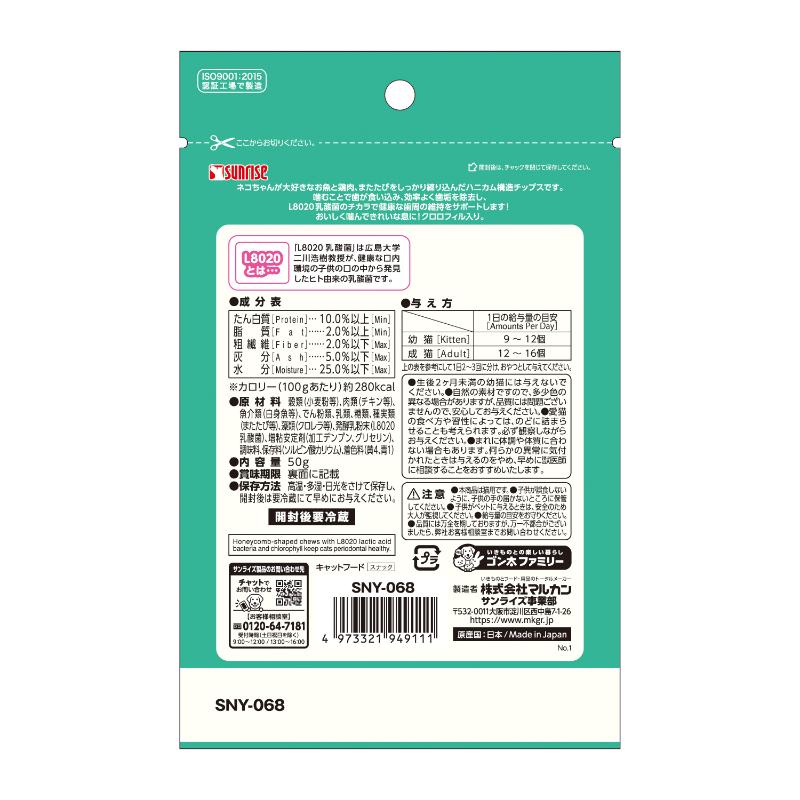[マルカン サンライズ]ニャン太の歯磨き専用おやつ L8020乳酸菌入り チップス クロロフィル入り 50g