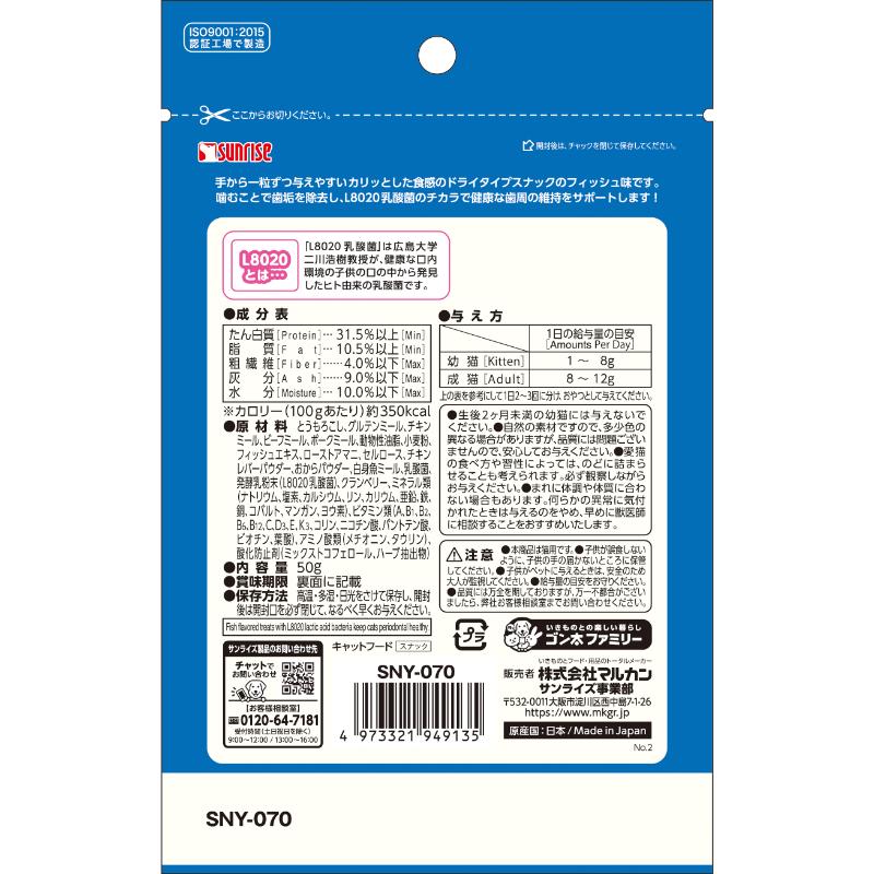 [マルカン サンライズ]ニャン太の歯磨き専用おやつ L8020乳酸菌入り カリっとドライ フィッシュ味 50g