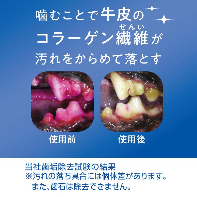 ・噛むことで牛皮のコラーゲン繊維が歯垢をからめて落とします。