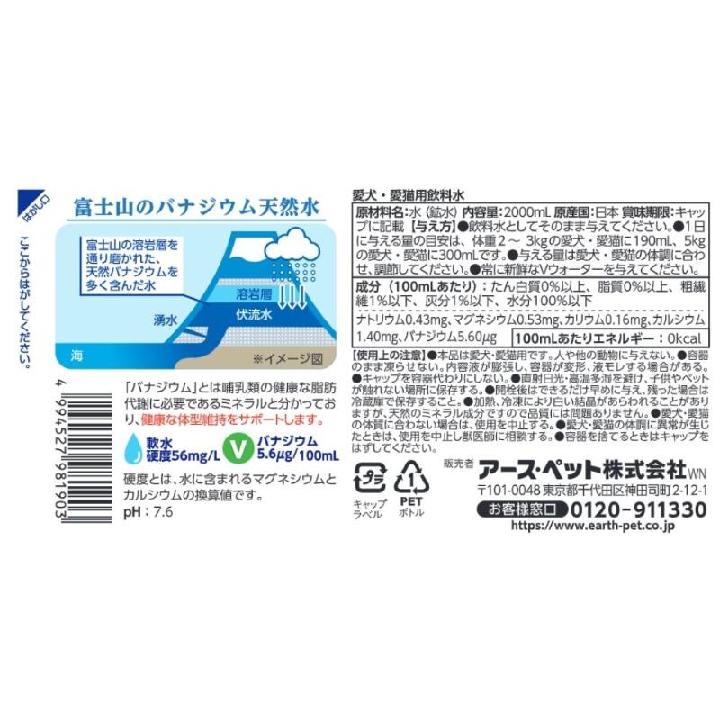 [アース・ペット]ペットの天然水 Vウォーター 2L
