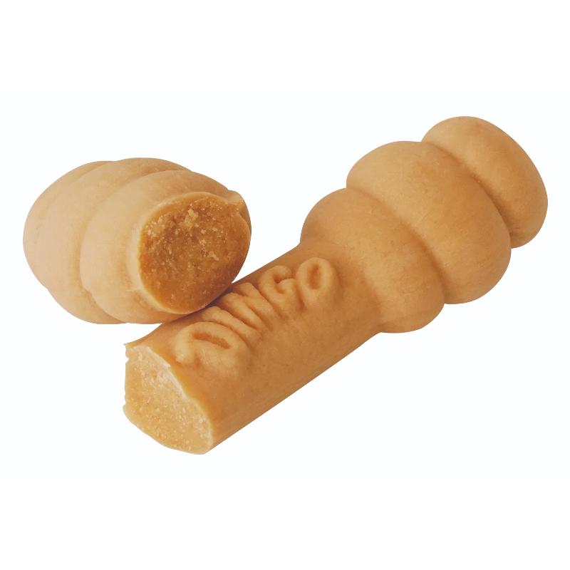 ・米粉やエンドウ豆粉などの体にうれしい素材と合わせて、柔らかめのガムのような噛み応えに焼き上げました。