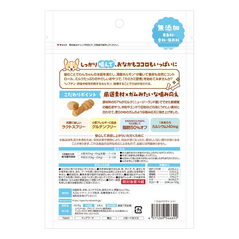・厳選素材×ガムみたいな噛み応え!原材料の57%がミルク(ニュージーランド産)でできた新感覚の噛むおやつです。