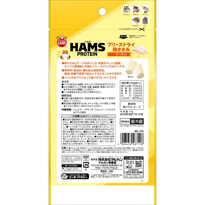 [マルカン]HAMS フリーズドライ鶏ささみ チーズ入り 15g