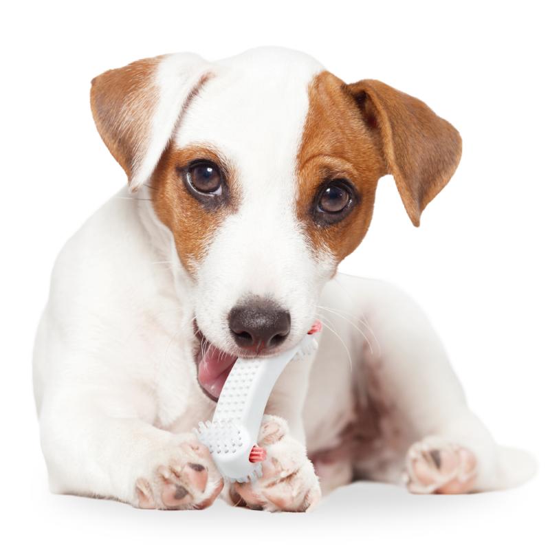 ・噛むことで突起が犬の口内を刺激し、ブラシが歯間の汚れを落とすことでデンタルケアができるように設計されています。